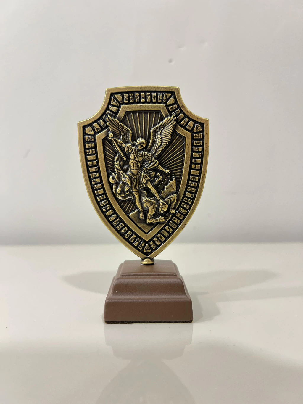 Descubra o Adorno de mesa São Miguel Arcanjo, uma peça única confeccionada em metal. Seu design clássico, com traços artísticos modernos, traz beleza e requinte para qualquer ambiente, além de sua profunda conexão com a fé.