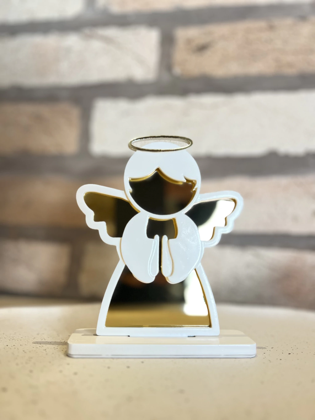 Anjo 3D em MDF Branco com Detalhes em Acrílico Dourado Espelhado