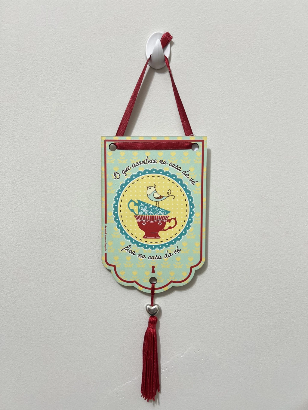 Detalhes do produto: - Material: MDF de alta qualidade - Design: Pintura provençal - Incluso: Fita de cetim para pendurar facilmente em qualquer ambiente e pingente de tessel.