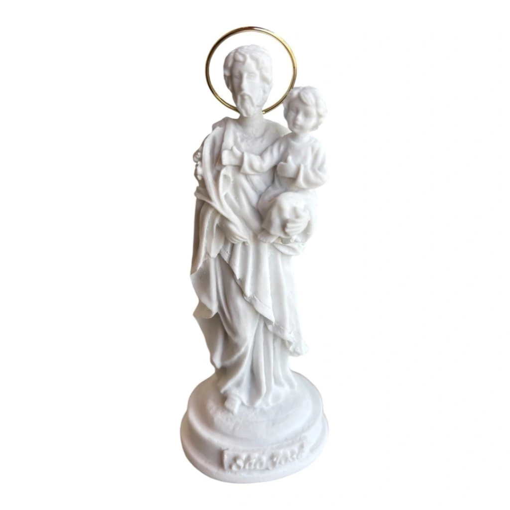 Imagem São José 12 cm em Pó de Mármore com Detalhes em Ouro – Arte Sacra Atemporal
